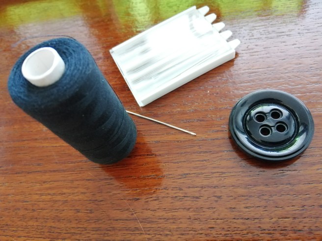 … att få den enklaste sak gjord. Som att sy i en knapp i en kappa 😀 !