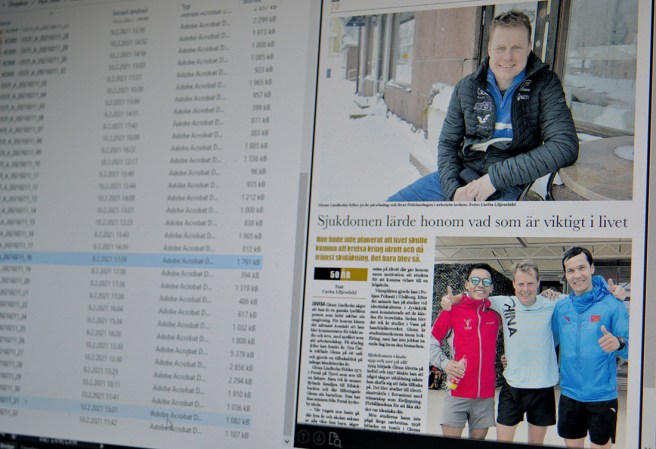 Så här kan det se ut då jag på distans följer med hur layoutjobbet framskrider. Det här är en del av intervju jag skrivit själv.