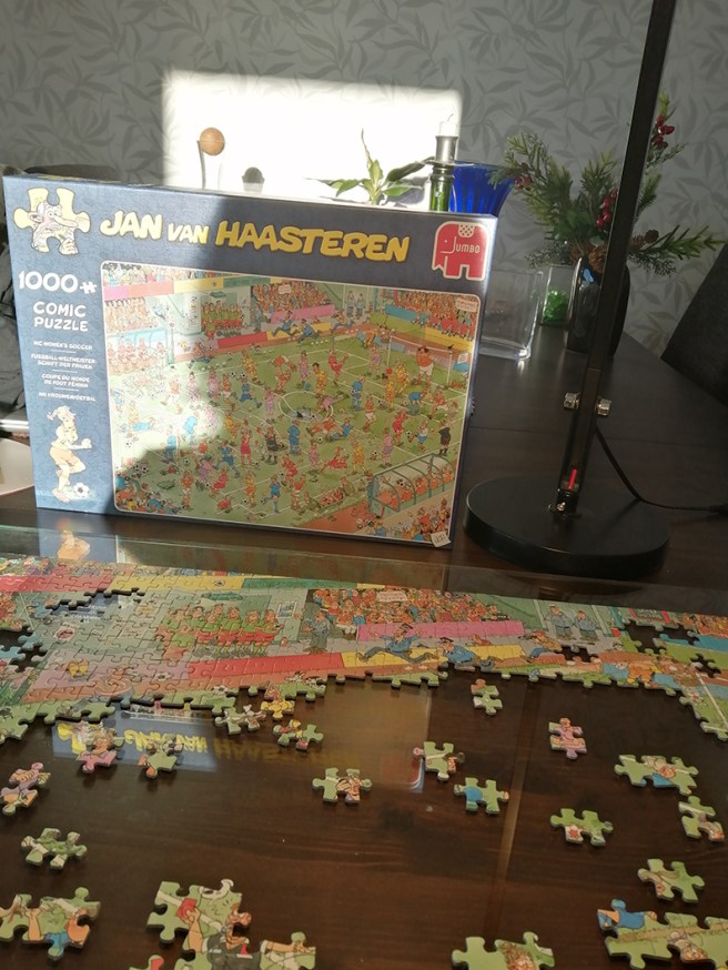Jag har VALT att pussla och ta det lugnt på min lediga dag. Ska också klippa lite i gamla tidningar för jag håller mig med ett eget privat Nya Östis-arkiv. På gammaldags sätt. Klistrar in artiklar på papper och lägger dem i en pärm 😀