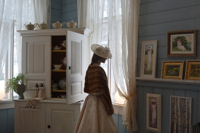 Många andra passade också på att besöka restaurang Kapellet i dag. Men någon trängsel blir det inte då restaurangen är stor och har flera rum man kan välja bland. ”Skonssibrunssin” (sconesbrunsch) har blivit populär. Kunder kommer till Lovisa från närliggande städer. I dag verkade någon också fira studentfest här, eller lät sig i alla fall fotograferas ute på terrassen med sin vita mössa. Vitt mot vitt, för det har kommit mera snö idag…