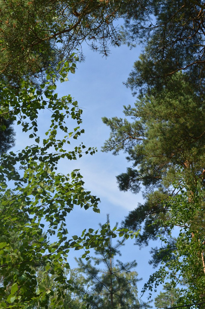 Vinden skapar sus i trädens grenar. Himlen är oskyldigt blå.