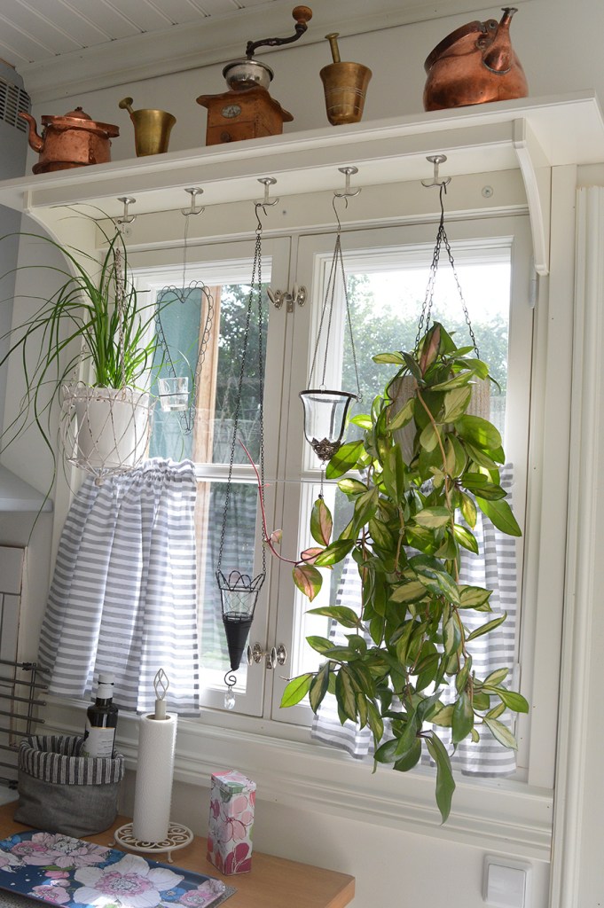 Vackert med växter framför fönstret.