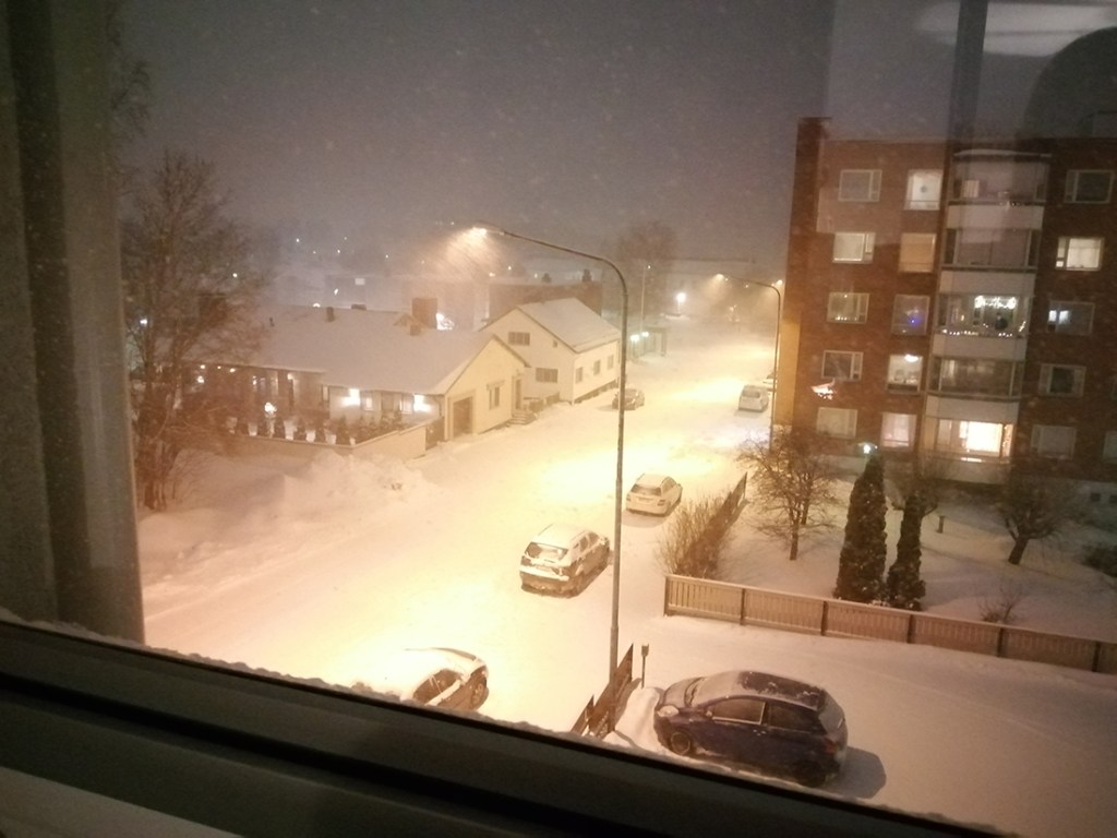 Det är svårt att fotografera snöyra och/eller storm. Oväder får namn efter namnsdagar som infaller just den dagen och därför har den här snöstormen i Finland fått namnet Valtteri på finska. Varför den inte heter Valter på svenska, eller kanske den gör det – det vet jag inte.