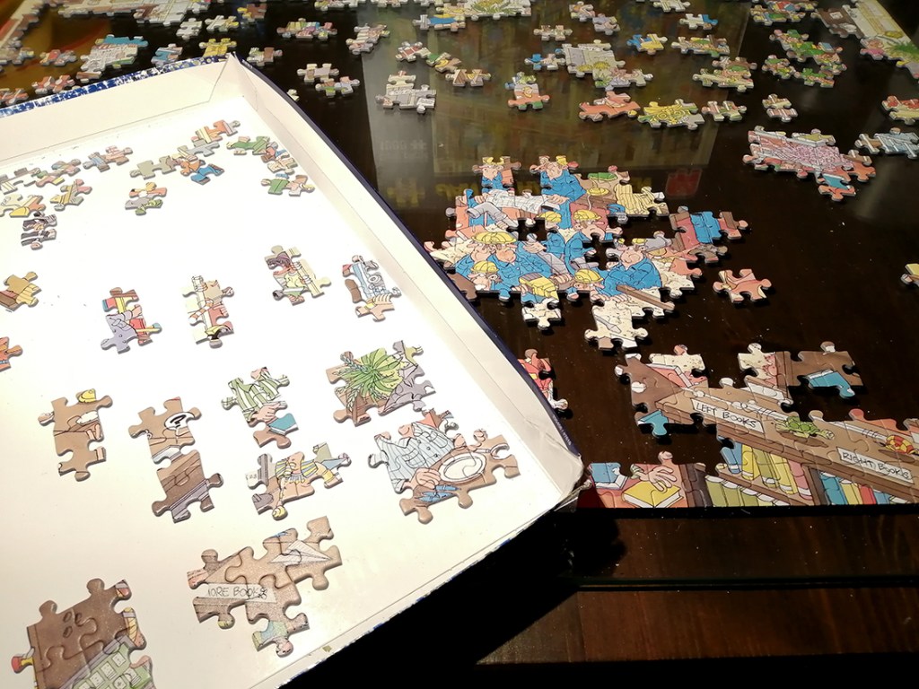 Nattfunktionen på mobilen tog den här bilden. Följande bild är tagen utan specialinställningar, men också med telefonen.Då stormen viner bakom hörnen och snön vräker ner passar det bra att pussla.