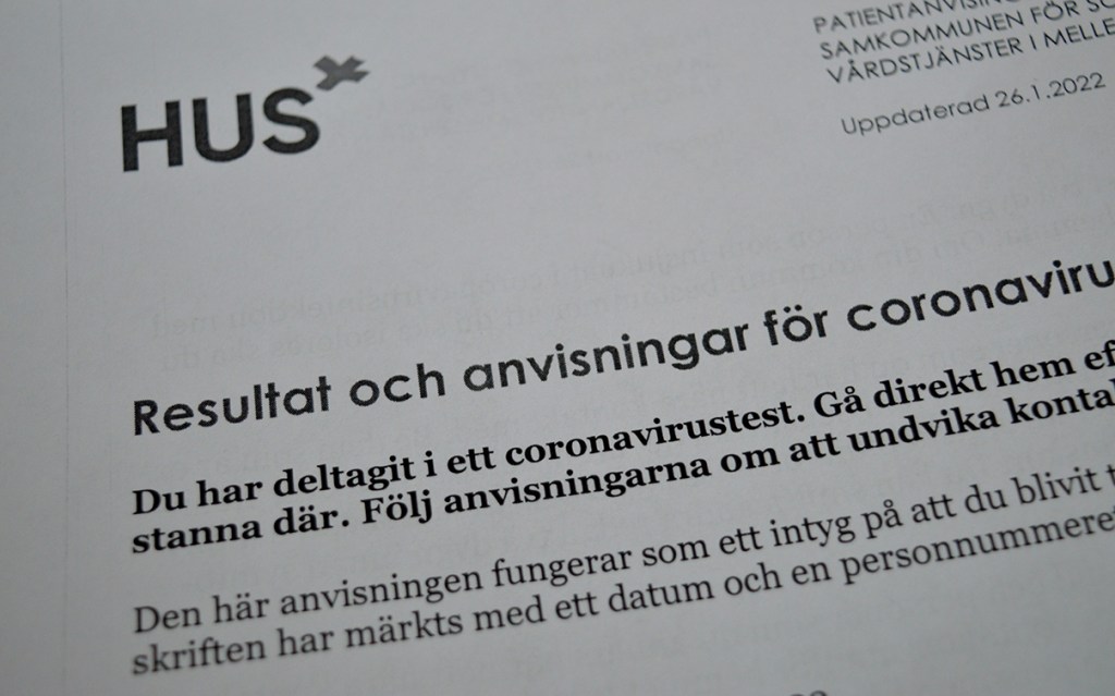 Beslöt mig för att beställa tid till ett trovärdigt test på hälsocentralen, men den är öppen bara om vardagar i Lovisa så dit kom jag iväg i dag. Testet i sig tog kanske 6–10 sekunder av vilka tre var smått obehagliga och tårarna rann. Men det finns värre saker som sker just nu, smärtor och elände, så det har var peanuts.
