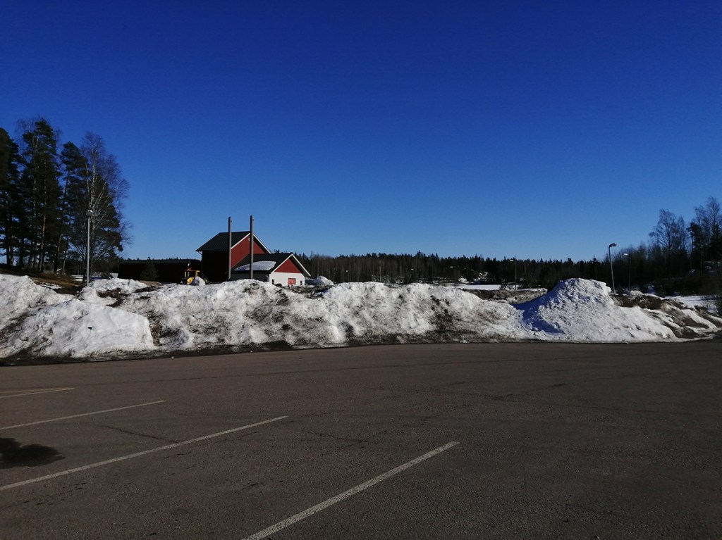 Och så en liten bonusbild från P-platsen som inte alls var tom. Alla bilar finns bakom min rygg. Jag ville föreviga den blå himlen och de smutsiga snödrivorna var minst två meter höga.