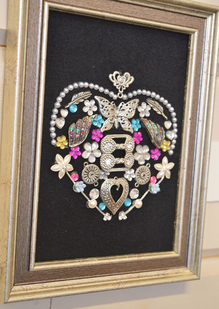 Lovade en gång i ett tidigare skede att visa bilder på tavlorna som mina väninnor Ann-Britt och Päivi gjort av kasserade smycken. Några av tavlorna finns till salu i restaurang Kapellets cafeteria i Lovisa.