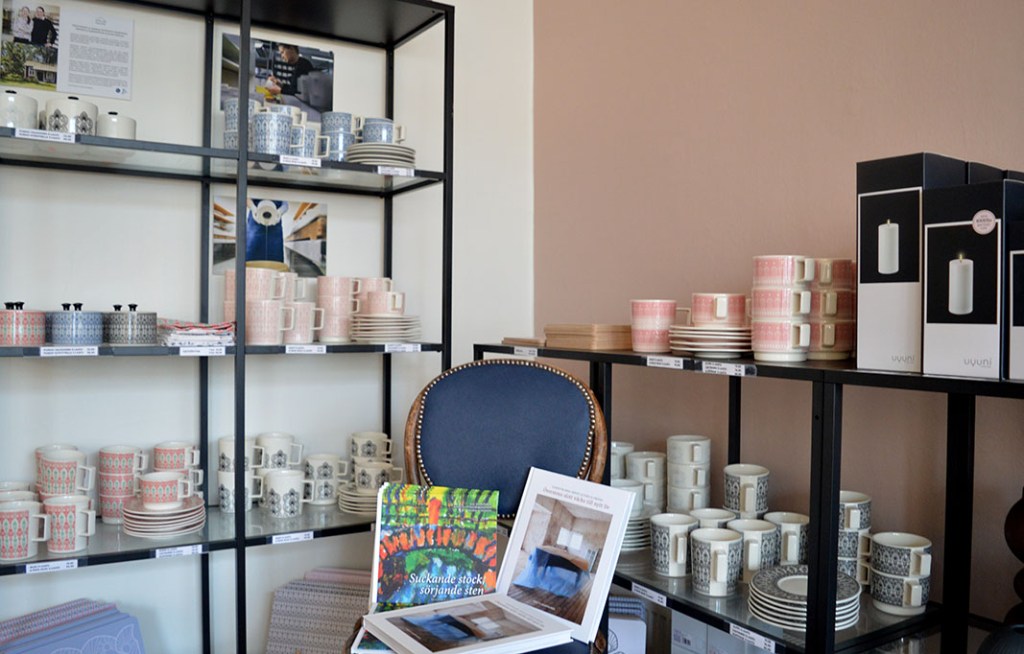 Produkter med lokal prägel. Allt från keramik till skärbräden och böcker. De batteridrivna ljusen är inte lokalt tillverkade.