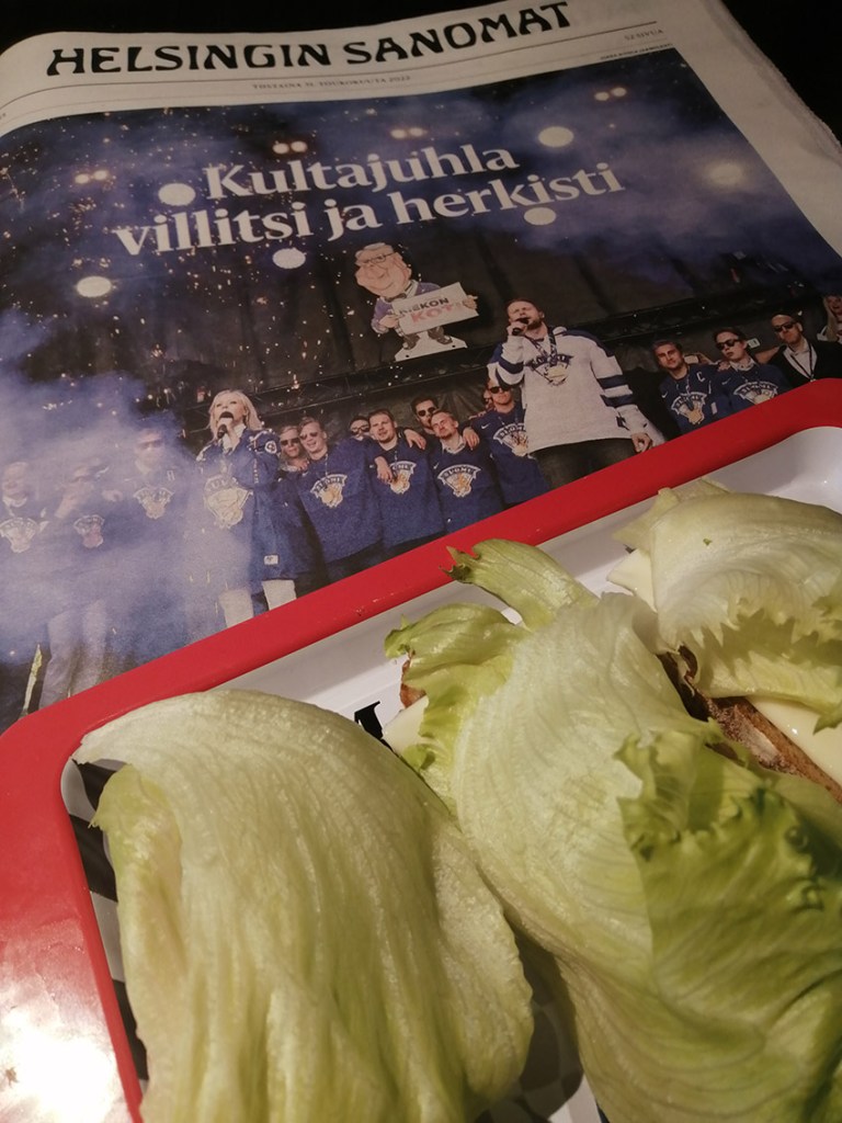 Och så har jag det som vi i Finland kallar ”himo” (lust, begär). Just nu är det stora högar av sallad och ett par skivor smältost på mackor utan smör. Ibland är det tonfisk och sallad, saltgurka och majonnäs 😂