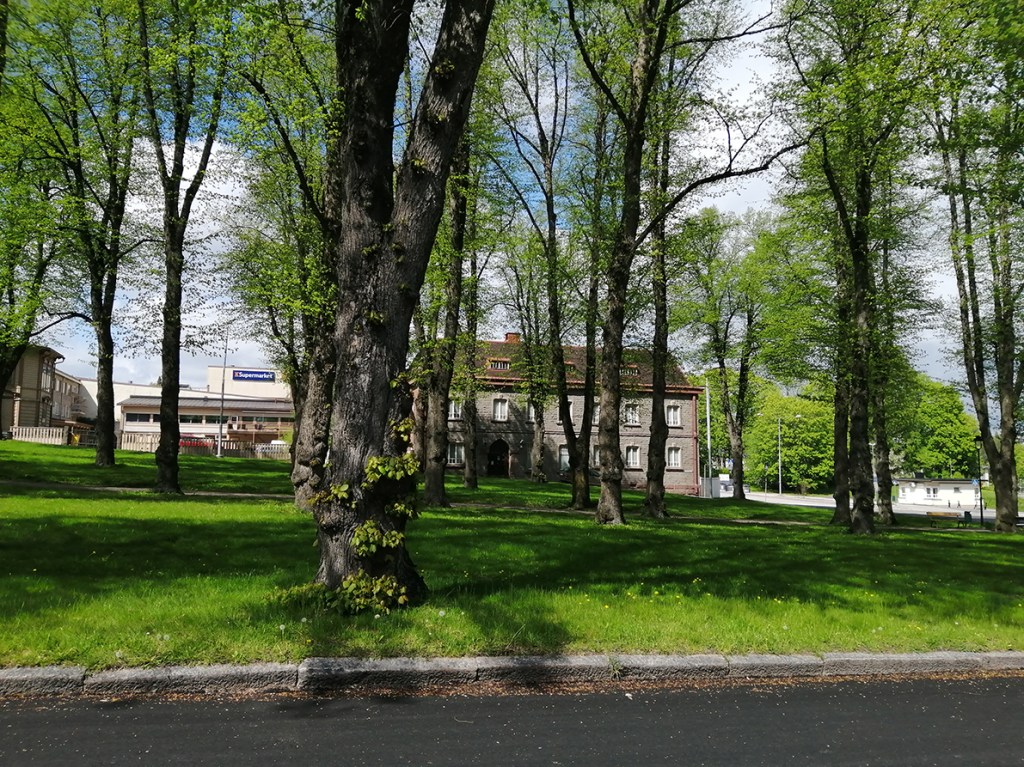 Bilderna togs i och för sig söndagen den 29 maj men de torde se likadana ut i dag 🙂 Grönskan i våra parker i Lovisa är alltid lika fin. I bakgrunden syns en liten del av K-Supermarket. I det gamla stenhuset finns polisstationens service, då och då kan man gå in där och sköta ärenden.Samma vy, men bara en aning högre uppåt. Jag står på samma plats som jag stod då jag tog bilden där husen syns.