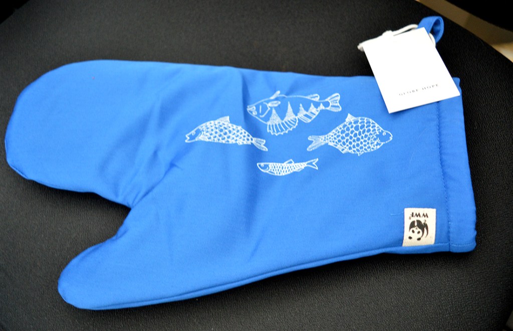 … och vinner praktiska saker. Köpte lotter från WWF och fick den här fina grytvanten. Låt gå för att den inte är svart eller grå, den har ju Finlands färger 🙂