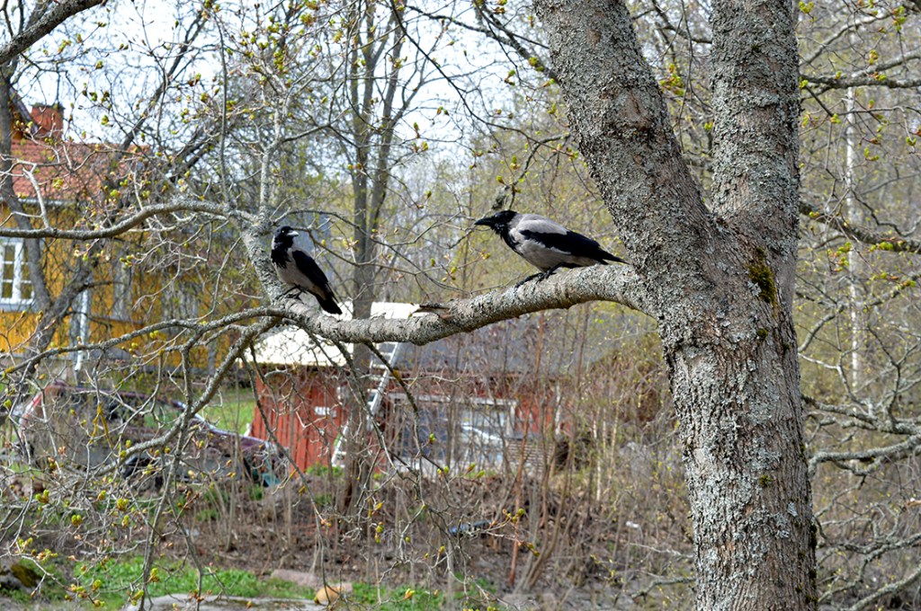 Ja, vem vet vad fåglarna diskuterade. Kanske världsläget? Eller var de ska hitta mat? Eller vad fåglarna i trädet intill hade talat om? Eller att våren är sen men att utsikten är fin.