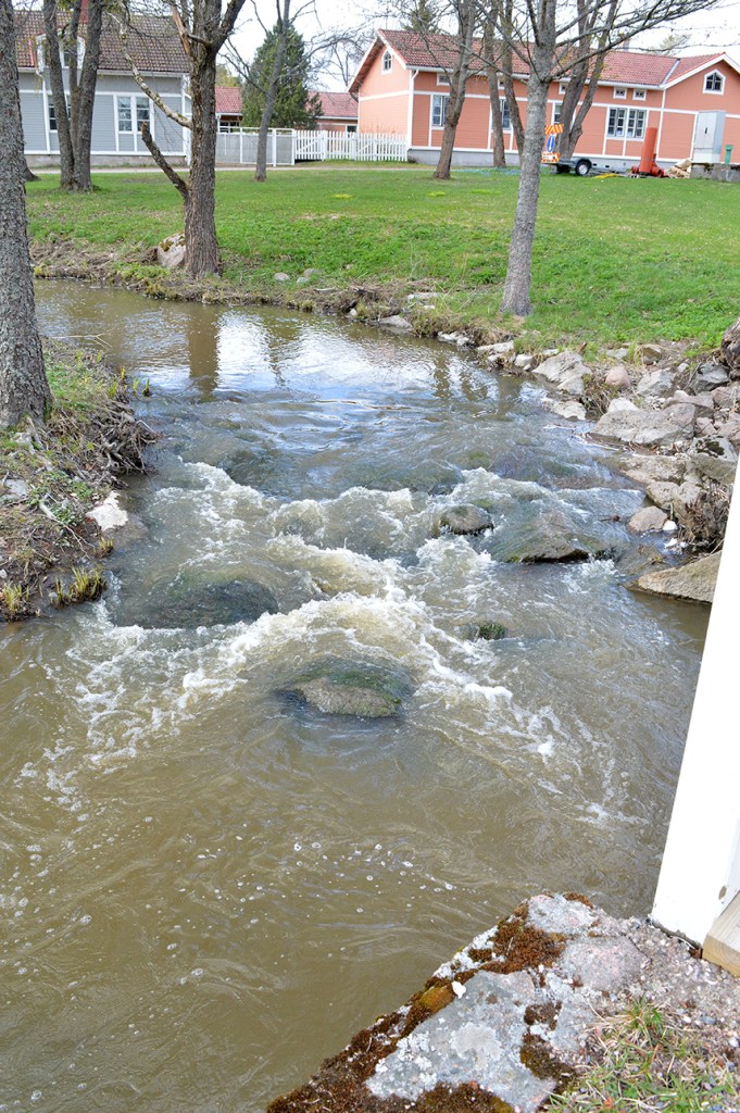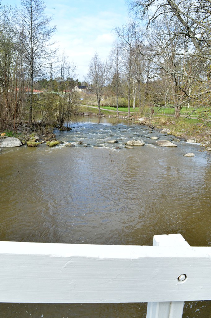 Ån forsar bra på i södra stadsdelen Garnison. Om det är långa, torra och varma perioder på sommaren förvandlas ån till en bäck, men på våren ser det ofta ut så här. Översvämningar i parken kan det också bli ibland.Tog de här bilderna för några dagar sedan. Nu är träden redan grönare 🙂