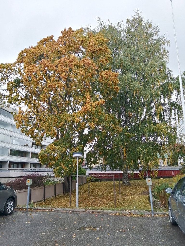 Hösten är vacker med de fina färgerna. Inga skogspromenader för oss numera. Mörkret kommer tidigt och vi hade 2 plus i morse.