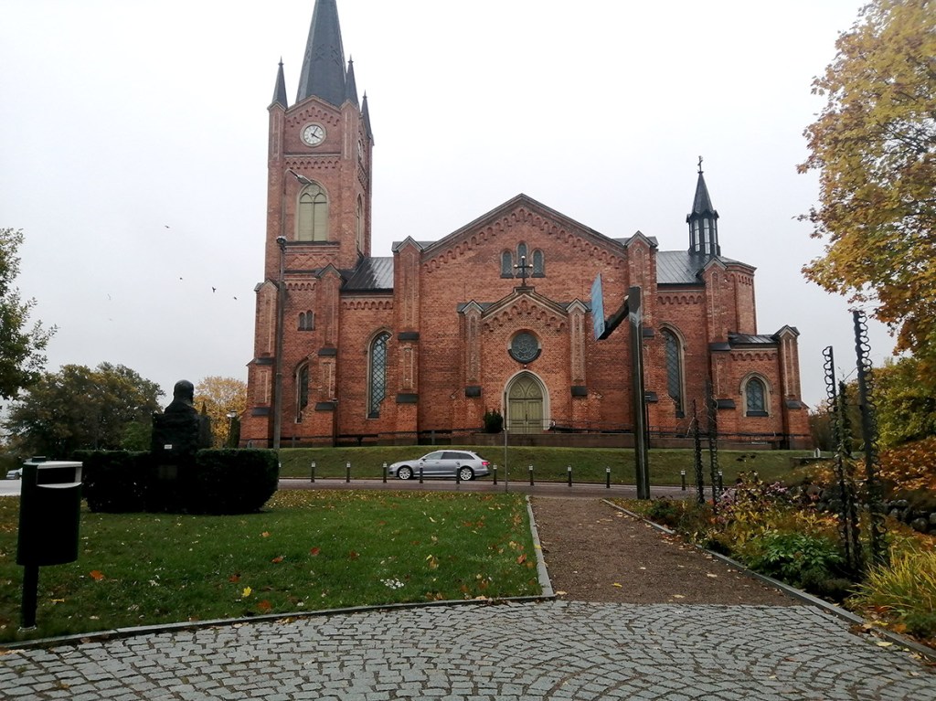 Endast de 300 sista metrarna hade jag ont i vänstra låret och lite i ryggen också. Då satte jag mig på en bänk i en park och vilade en minut med kyrkan framför mig 🙏 och det hjälpte 🙂