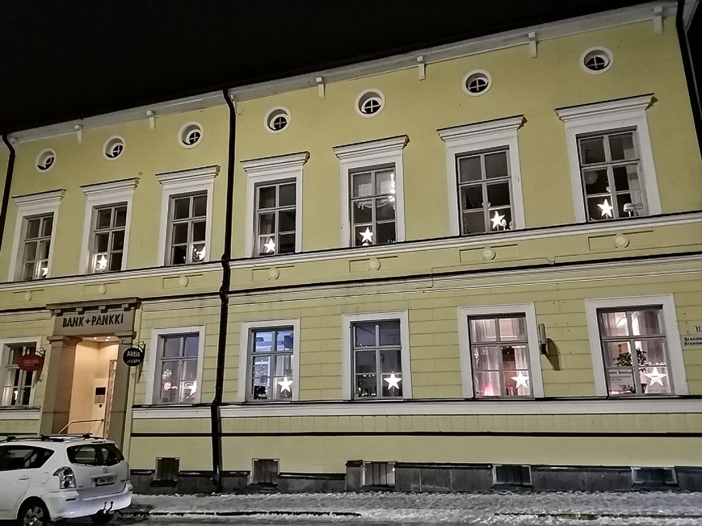 Sammanlagt 2800 steg i dag. På kvällsrundan såg jag att det kommit upp fina stjärnor i fönstren till byggnader vid torget. Förr fanns här ljus som liknade nåt slags stora blockljus. Liknelser med allt möjligt annat har också genom åren uttalats. Så de här stjärnorna är finare!