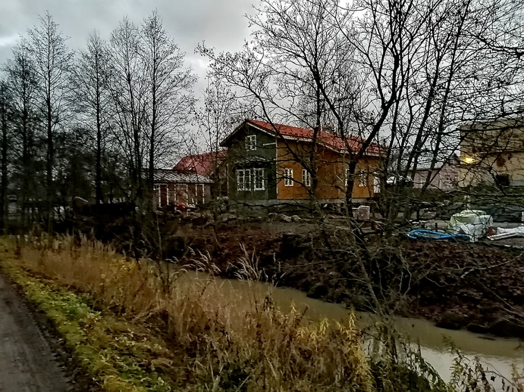På bilden ses ett nytt hus som håller på att byggas istället för det fina 1700-tals hus, Tenngjutarens hus, som olyckligt brann ner för några år sedan. Jag tror att det nya huset till sin modell ska bli ungefär som en kopia av det gamla.