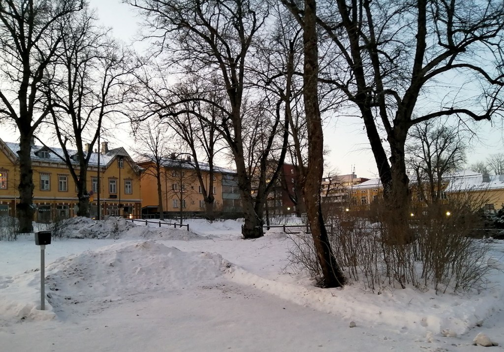 Här på Drottninggatan kan man lugnt gå mitt på gatan kvällstid. Dels för att den utgör en återvändsgränd på grund av jobb med vatten- och avloppsrör, dels för att det är lugnt på gatorna i Lovisa om kvällarna 🙂