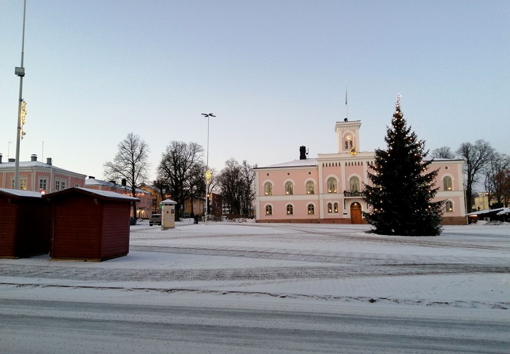 Det blev 2836 steg. Jag är nöjd för att jag satte ribban lågt. Hade jag satt den på 3500 eller mer så hade jag inte kommit ut varje dag. Jag hade gett upp för länge sedan. Men nu har jag inte gjort det. Jag har inte gett upp och jag tänker inte ge upp. Vissa dagar känns det bara motigare än andra att komma ut. Men jag kliver i icebugsen, drar kappan på mig, öppnar dörren och går ut. Några kvarter räcker för att nå målet.Julgranen på torget.