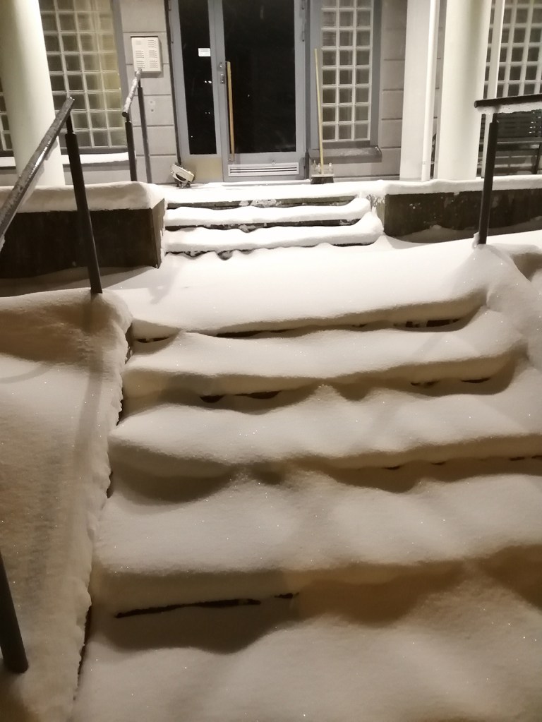 Trappingången till grannhuset klockan 22.30. Lär nog putsas imorgon bitti av duktiga fastighetsskötare.