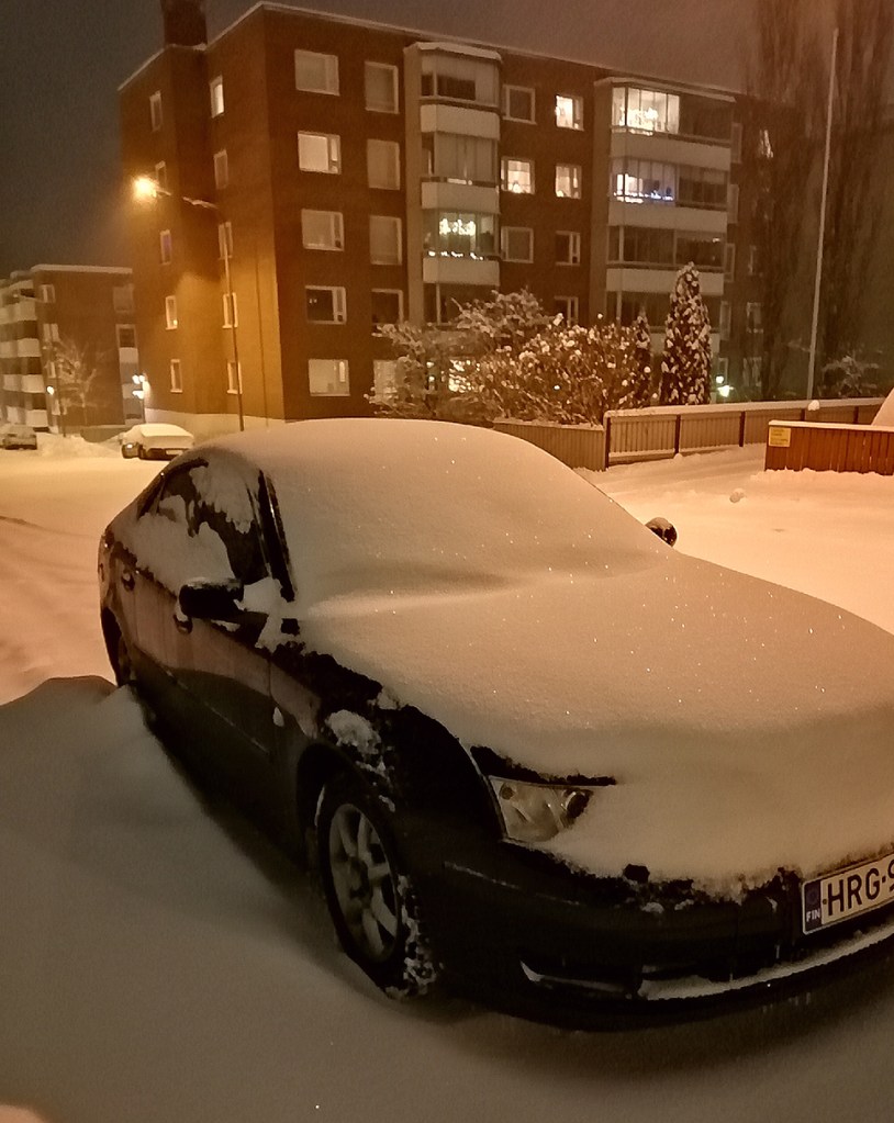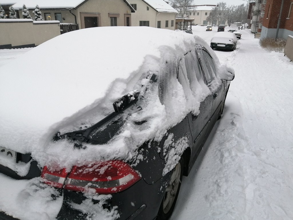 På kvällen låg det lika mycket snö på bilen som på dagen några timmar innan.