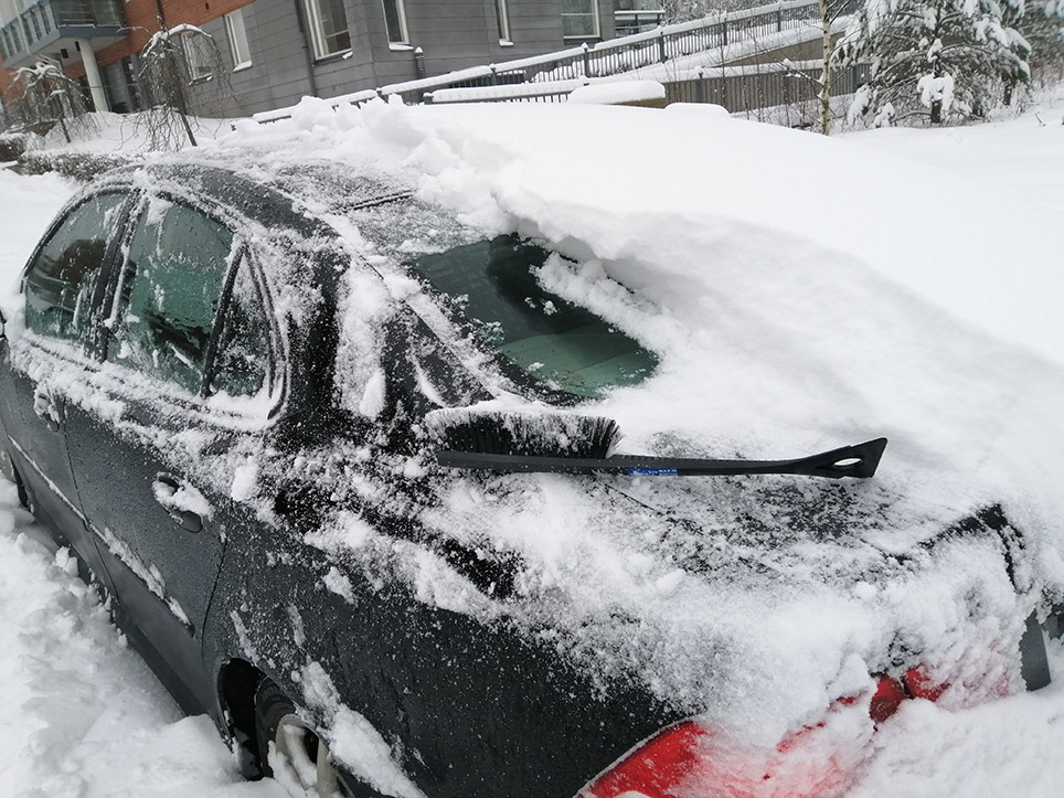 2. Vilket jobb du har med din översnöade bil. Så mycket snö ni får, det verkar som molnen färdas över oss och stjälper av hos er. Finns det ingen möjlighet att hyra ett garage över vintern?