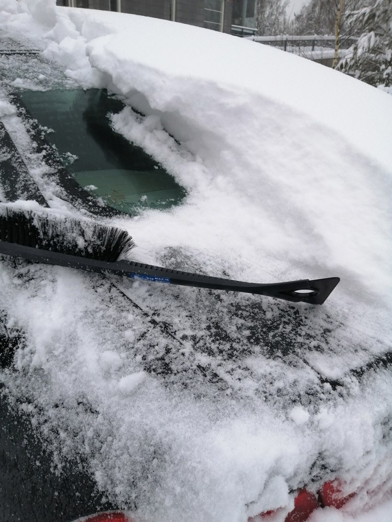 Eftersom plogbilen kör tidiga morgnar för att få gatorna fria från snö är många bilar inplogade. Jag behövde snöskuffare för att komma så nära min bil att jag kunde borsta bort snön.