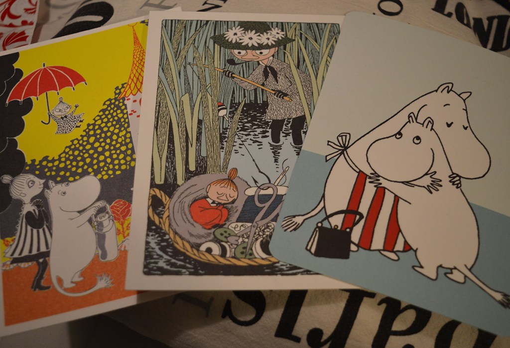 Eller egentligen var det en glad lördag, då jag med syrran besökte bokhandeln och köpte klistermärken och en mängd vykort. Det fanns många nya kort med Muminmotiv ❤