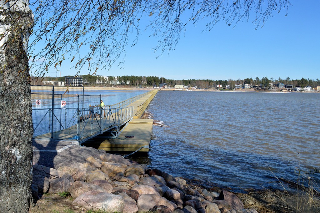 Med vinden i ryggen vidare mot Rosenstranden. Där har nu Kronobron, som förbinder västra stranden med den östra lagts ut. Den leder från Strandparken till bostadsmässans område. Nu återstår bara tre månader så har vi bostadsmässa i Lovisa. Välkomna alla! Den pågår 7 juli – 6 augusti 2023. Till stadens förväntas ungefär 4000 besökare per dag under fyra veckors tid. Kan blir mer ibland, och mindre vissa dagar. Men det är stora mängder människor i en ganska liten stad.