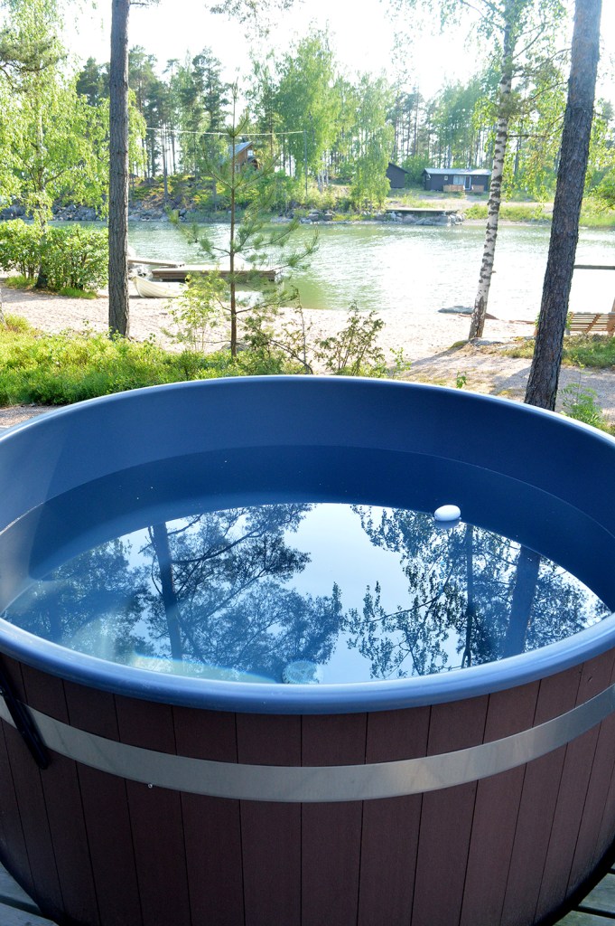 En upplevelse var det också att fylla badtunnan och sedan elda så att vattnet blev varmt, men framför allt härligt att ligga där i kvällskymningen och se upp mot tallarnas kronor och himlen.
