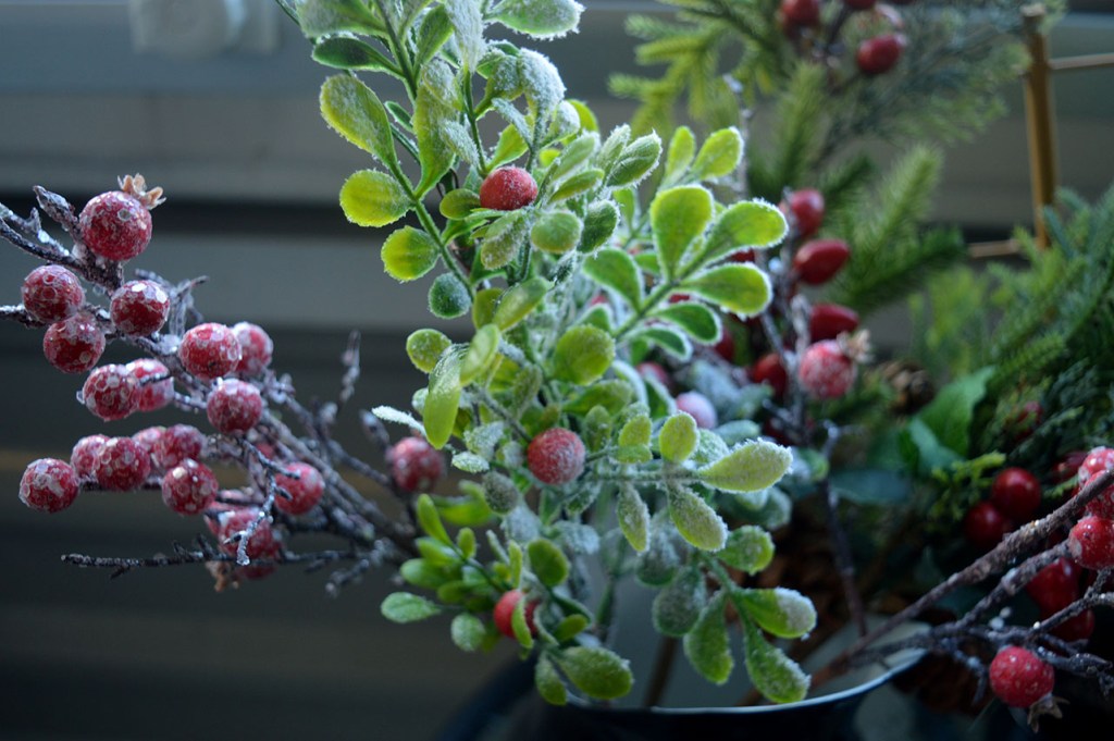 Jag är inte direkt en vän av saker tillverkade i plast. Men jag har gett efter då det gäller vackra kvistar som ser nästan äkta ut med frusna rönnbär och lingon, kottar och granris. Jag har dem i en vas på balkongen. På mitt loppis i somras var jag redo att ge gratis bort kottarna och granrisen, men ingen ville ha dem 😂 Så nu köpte jag frusna rönnbär och lingon till.
