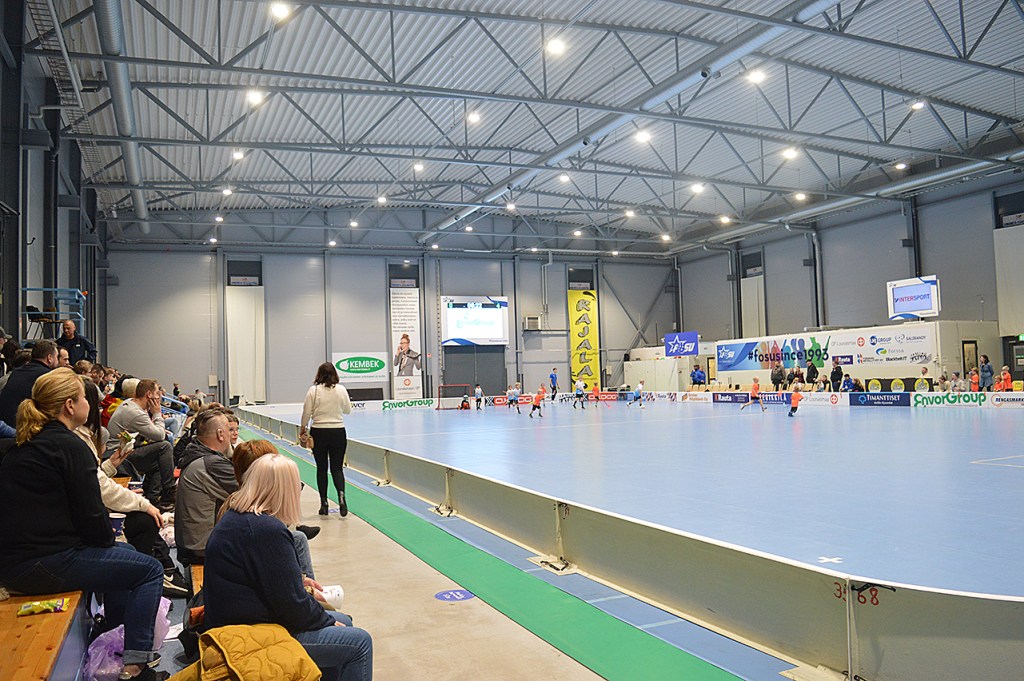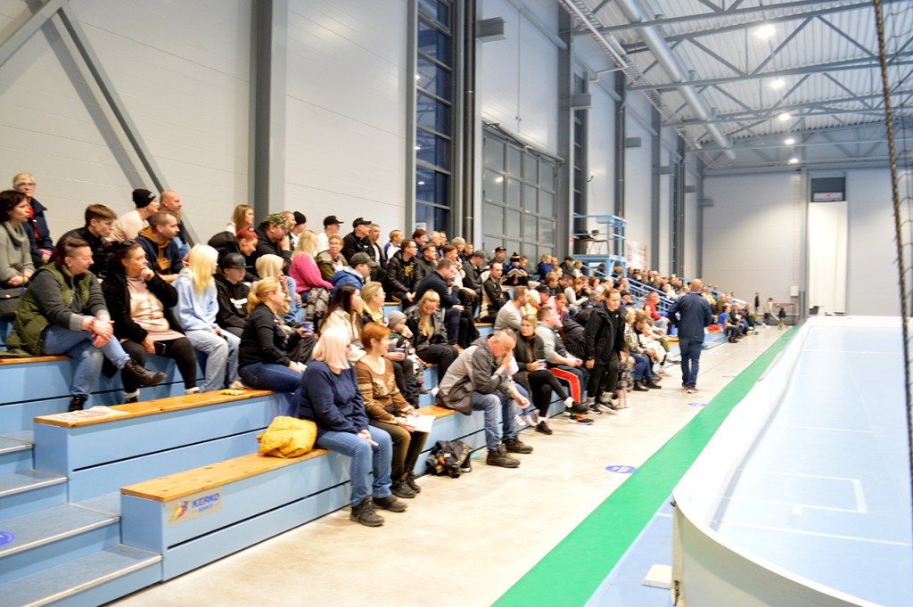 Hallen i Forssa verkade vara rätt ny. Inte alla gånger som det på denna nivå finns så här mycket plats för publik heller, och sällan ibland är vi som kommer från Lovisa fler än de i hemmapubliken. Det var vi inte nu, men med vårt tumma lyckades vi göra oss hörda ändå. Vårt gäng sitter längst borta på bilden, då Tor spelade mot målet som fanns där.
