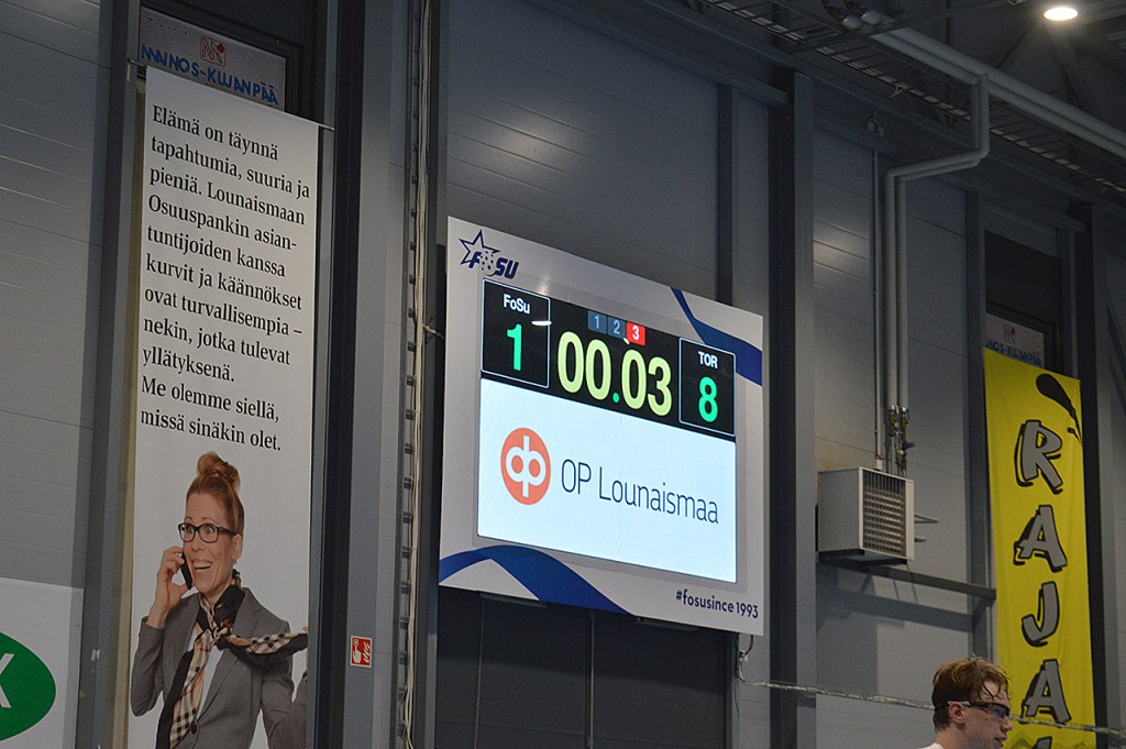 Det här är en av de finaste resultattavlorna jag sett på länge. Tor mötte igår på bortaplan Forssan Suupparit i Finlandsserien och på den här nivån är det sällan avancerade tavlor. Digitala i och för sig, men inte med reklam och sedan under matchens gång även med namnen på målgörarna.
