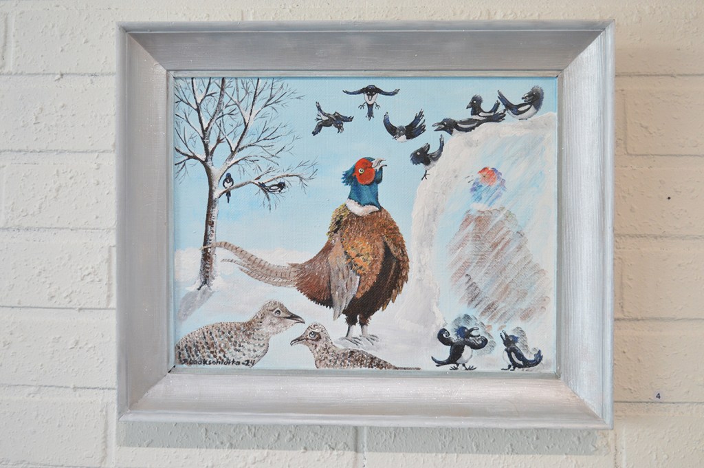 Spegel spegel på väggen där! Nåt i den stilen hette den här tavlan. Den finns inte längre kvar i Galleri Theodor, idag öppnas en ny utställning där. Men jag tyckte den här var färgglad och fin!