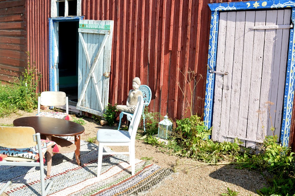 När du går ut från huset öppnar sig den här vyn mot bakgården.