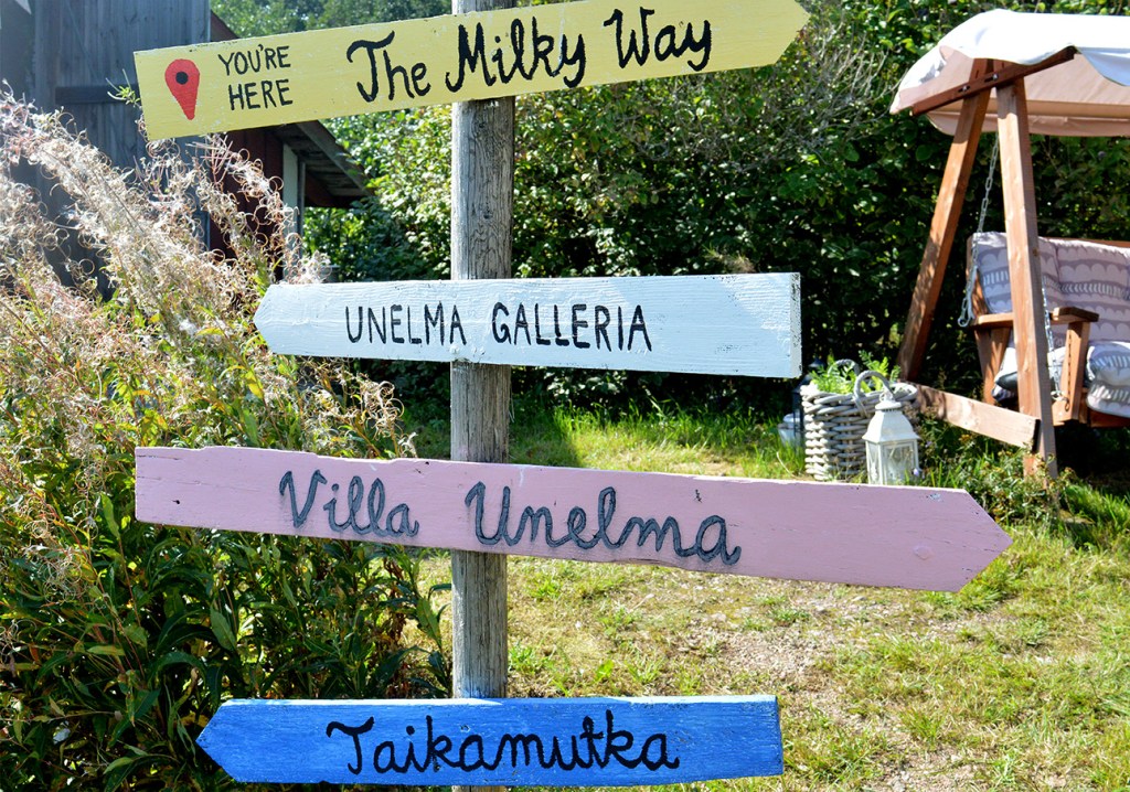 Trevligt åter att ha skyltar på lager då jag besökte Lovisa Historiska Hus. Den här fanns på gården utanför Villa Unelma. Unelma = dröm. Taika = magi, trolleri. Mutka = kurva, krök på en väg. Således kan Taikamutka fritt översättas till magiska kurvan 😀