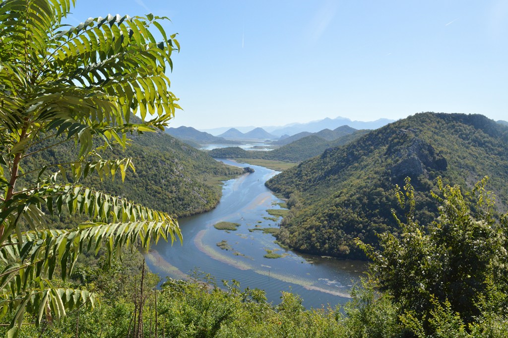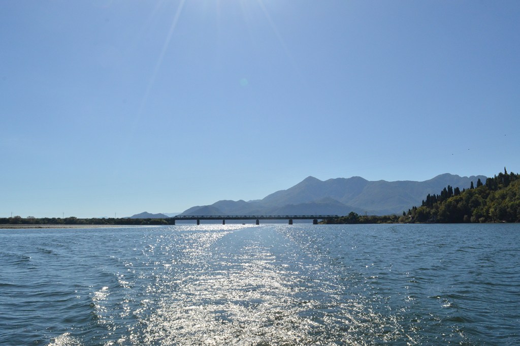 När vi hade åkt vidare med bussen stannade vi på en utsiktsplats som visade oss en av Skadarsjöns många fåror.