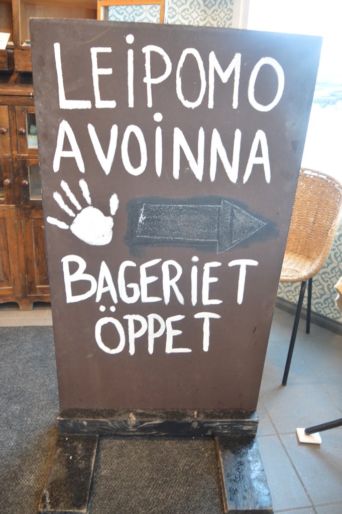 Här behövs ju ingen översättning, skylten är tvåspråkig. Den står förstås vanligtvis inte inomhus såsom här, men jag kom hit strax före stängningsdags och då hade skylten flyttats in 🙂