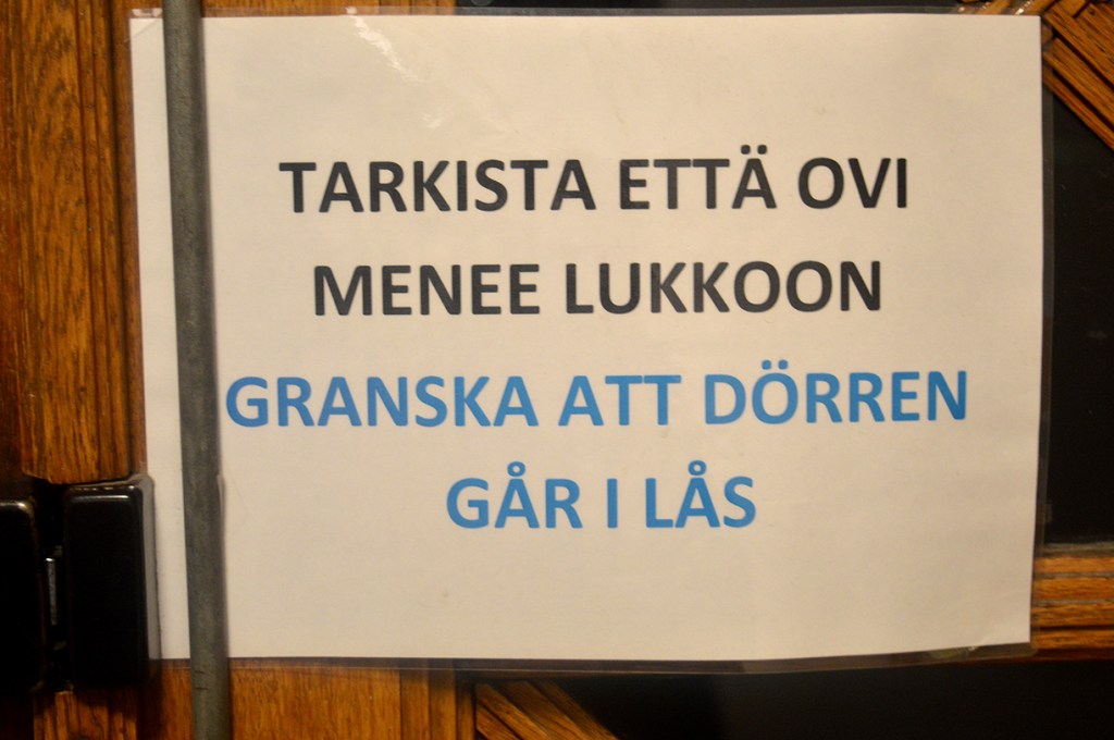 En bonusskylt, också tvåspråkig, som finns i församlingshemmet här i Lovisa.