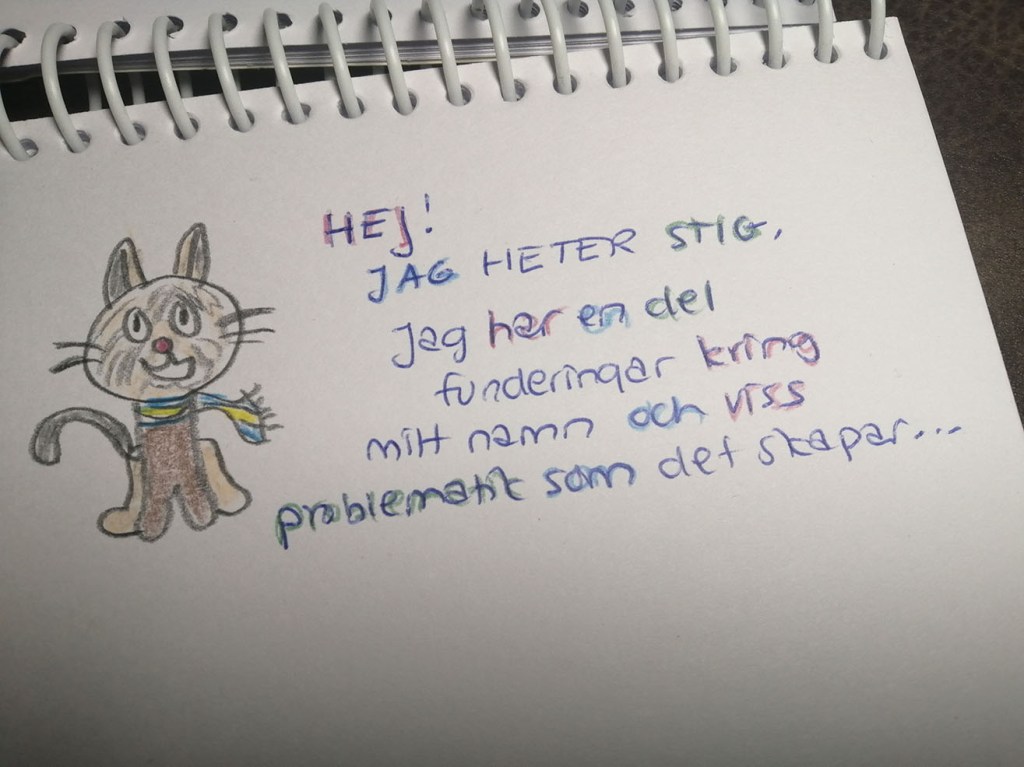 Katten Stig har fått många idéer till teckningar, tankar och ordlekar att ploppa upp i min hjärna. Det här ändå tillsvidare enda teckningen av honom.