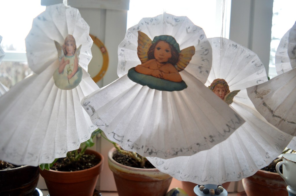 Bakom kalenderlucka med nummer 18 döljer sig i dag pappersänglar. De fanns till salu i Villa Armas som var ett av de öppna julhemmen nyligen.