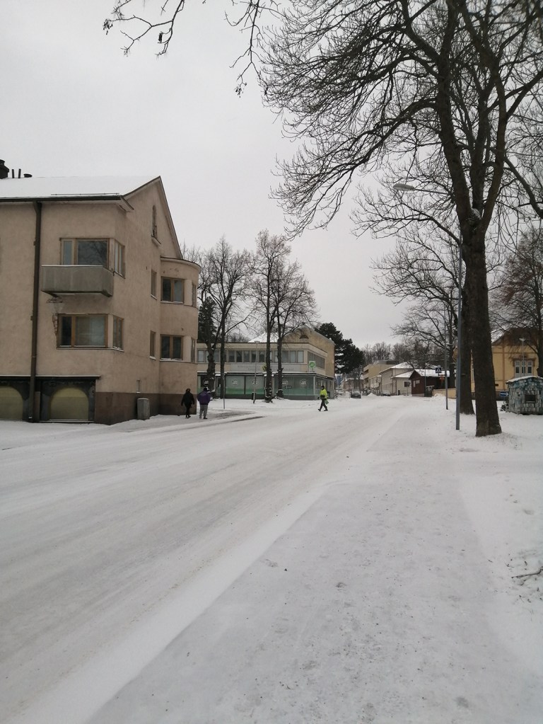Har alltså inte lång väg från massagen hem. Här har vi Mariegatan och som ni ser, inte för mycket snö, men vintern är nog inte på något sätt min årstid. Bara att kämpa på.
