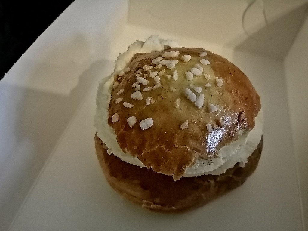 Fastlagsbulle med mandelmassa och grädde, från Hardom Bröd. Jag vill ju köpa bara en, och i de större affärerna är det alltid minst två-pack.