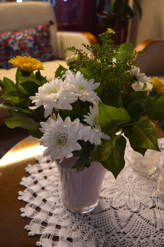 Gissar att det var ett gäng pensionärer som träffades för att prata och kanske har någon slags handarbetscafé. Så gulligt av dig att uppvakta värden med en så fin bukett.