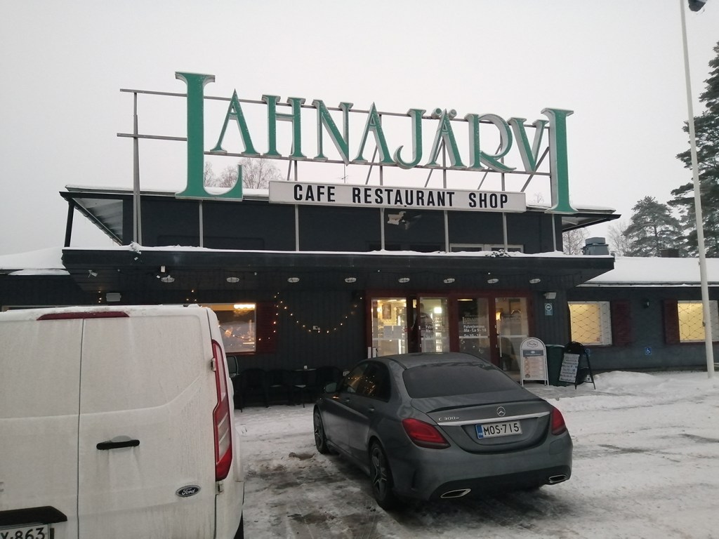Innan motorvägen mellan Åbo och Helsingfors fanns gick här bara en riksväg och då stannade miljontals människor genom åren vid vackra Lahnajärvi. När trafikflödet ändrades drastiskt gick kafeterian i konkurs, men nu är den öppen igen. Härligt, nostalgiskt! Så det blev dagens skyltningar!
