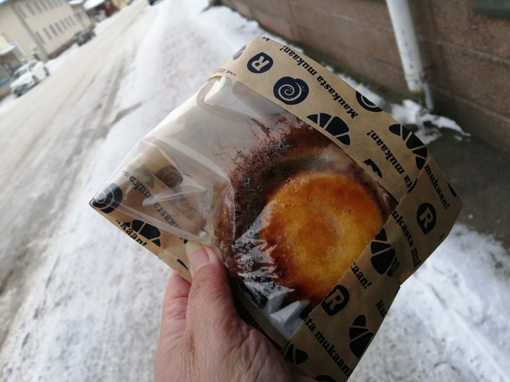 Jag blev helt såld, och sedan var också bullen såld! Jag började äta på den redan då jag promenerade hemåt. Så någon motionsrunda för att bli av med kalorier blev det här ju inte 😀