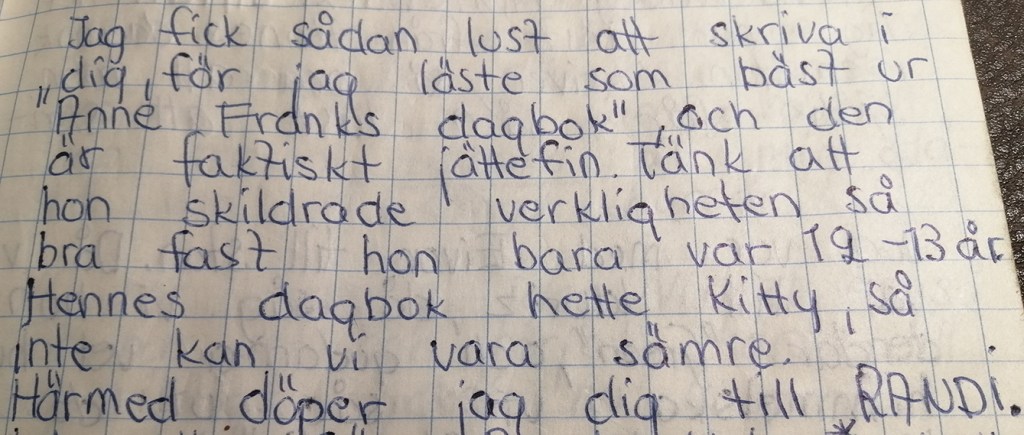 Den 16 augusti skrev jag det här. Jag återkom också efter det till hur Anne Frank inspirerade mig att skriva.