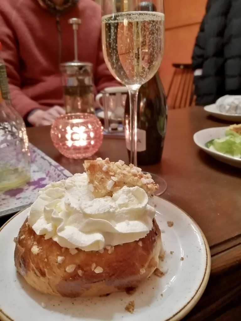Sedan blir det lite andra foton från veckan som gick. Nya Östis reporterträff, varje sista torsdag i månaden. Denna gång på Cafe Favorit där jag tog kombinationen fastlagsbulle (den andra för i år) och skumpa.