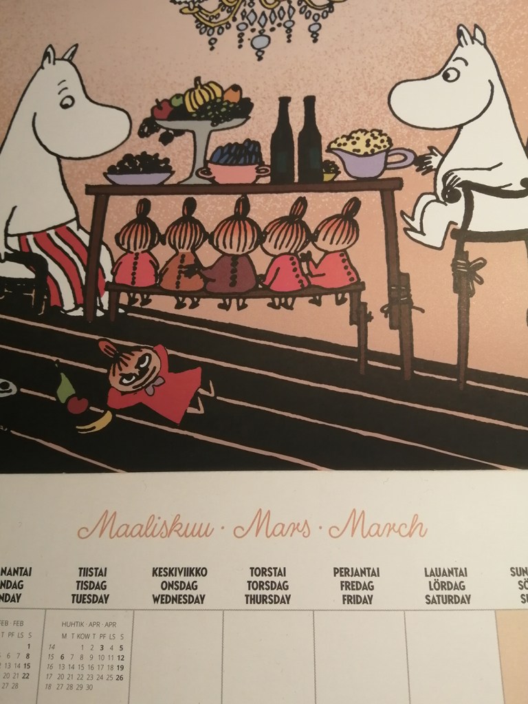 De stannar ännu inomhus och äter. Vädret verkar nyckfullt också där i Mumindalen.