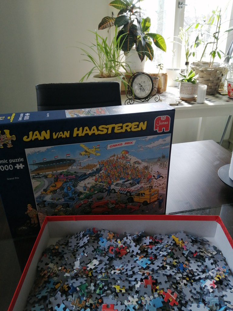 Skötte mina växter i köket, öppnade pusselkartongen och ska senare i dag börja leta efter och sortera kantbitarna.